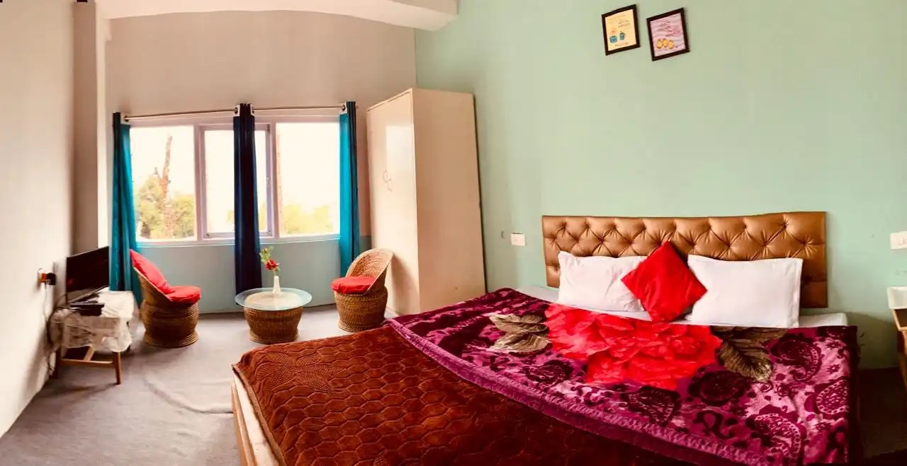 Best comfortable rooms for your family. The beds are 6 X 7 in size (king size) so it is comfortable for 3 guest. Average temperature is cold here so you need Geyser & electric kettle facility which is available at every room that’s why you never fill uncomfortable here.
